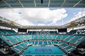 Após 32 anos sendo realizado no Crandon Park, em Key Biscane, em 2019 o Miami Open ganha casa nova: o Hard Rock Stadium. Casa do time de futebol americano Miami Dolphins e palco do Super Bowl 2020, o estádio foi totalmente adaptado para receber o torneio de tênis, com a construção de quadras fixas no exterior e da quadra principal, temporária, no interior do estádio.